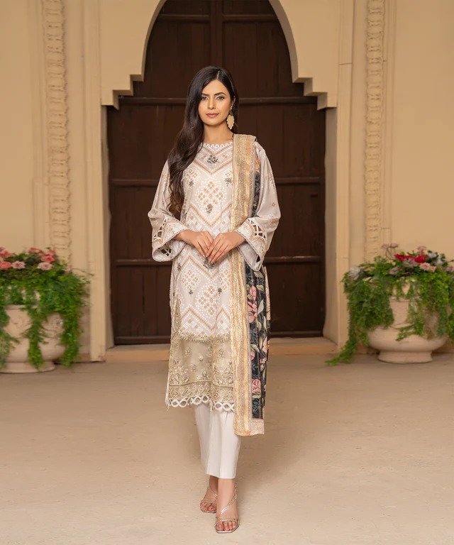 Refresh your seasonal wardrobe with this elegant 3PC Universal Digital Printed & Embroidered Lawn Suit. Designed with a perfect blend of digital prints and intricate embroidery, this unstitched ensemble offers both sophistication and versatility.