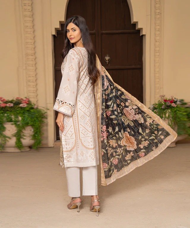 The beautifully printed fancy dupatta complements the outfit with rich floral patterns and soft drape, creating a balanced and graceful look. Paired with a comfortable cambric trouser, this ensemble is ideal for casual gatherings, day events, and semi-formal occasions.