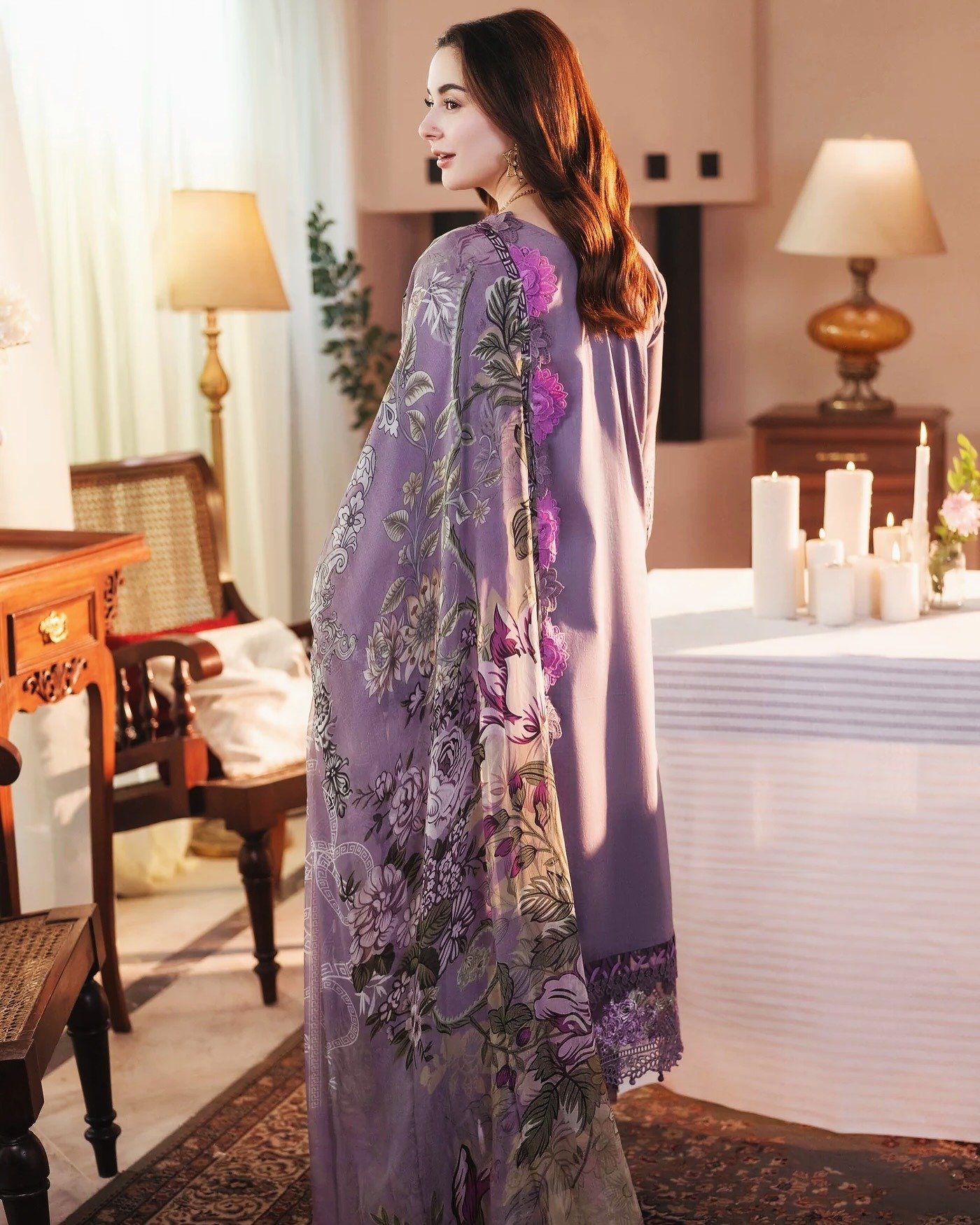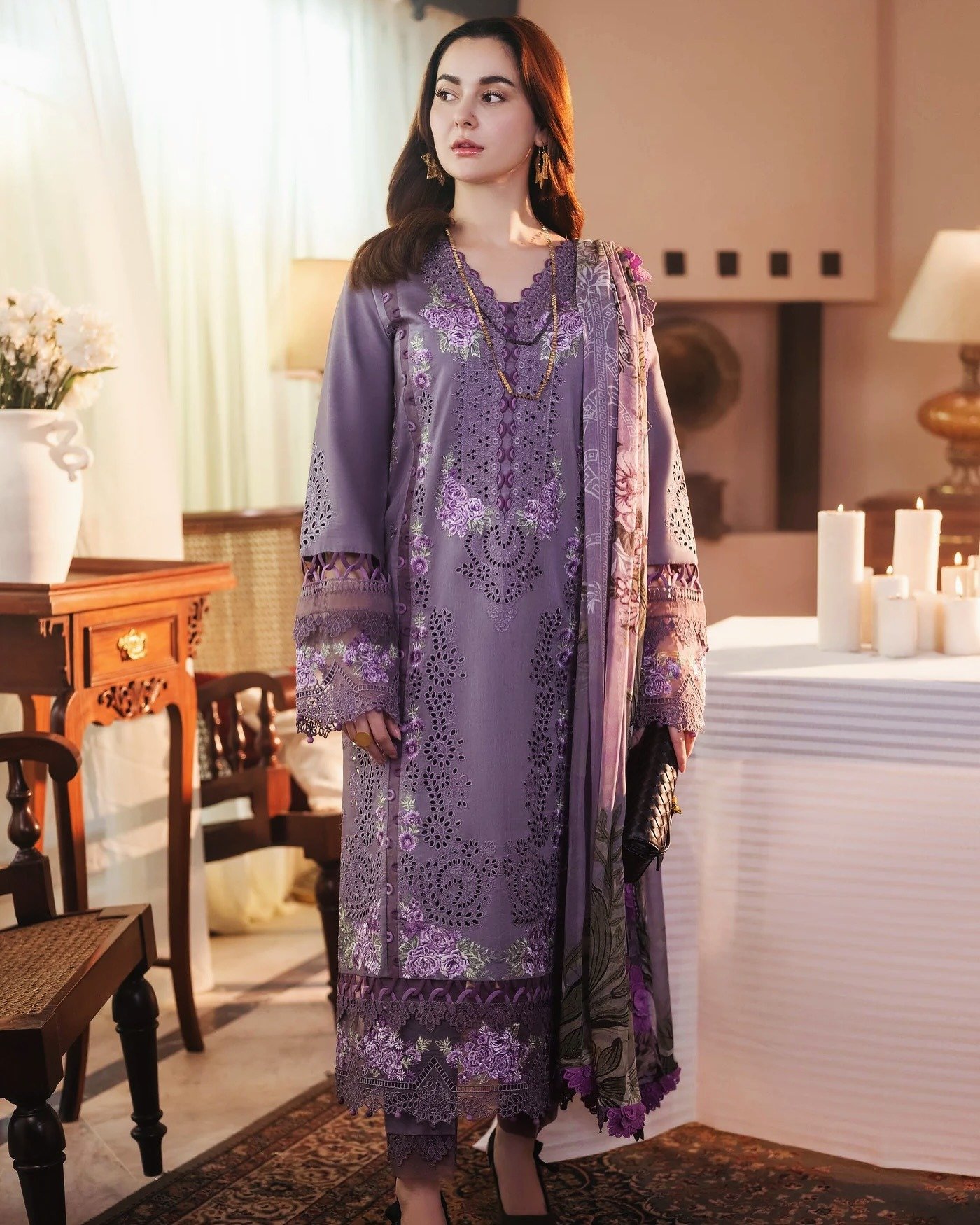 Introducing “Intezar” from the Jade x Hania Amir Luxury Lawn Collection — a refined blend of premium craftsmanship and contemporary elegance. This exquisite 3-piece unstitched suit is crafted from high-quality lawn fabric, adorned with delicate embroidery that enhances its graceful silhouette.